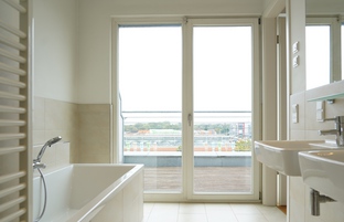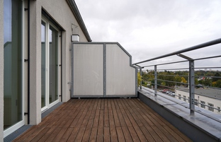 Beide Dachterrassen verfügen über Außenwasser- und Stromanschlüsse. Außerdem sind die großen Fensterfronten mit elektrisch bedienbaren Außenjalousien versehen.