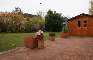 Die Immobilie befindet sich auf einem ca. 709 m² großen Eckgrundstück mit Außenzugang, das sich in einem gepflegten Zustand mit einer idyllisch eingewachsenen Gestaltung präsentiert. Ein in Massivbauweise errichtetes Nebengebäude mit Sanitäranlagen sowie ein Gartenhaus bieten geräumige Abstellflächen.