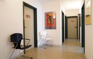 Der derzeitige Grundriss bietet einen geräumigen Anmeldebereich, fünf großzügige Untersuchungsräume, zwei Wartebereiche, Sprechzimmer, Laborraum, Sozialraum, Abstellräume sowie Sanitärräume inkl. behindertengerechtem WC.